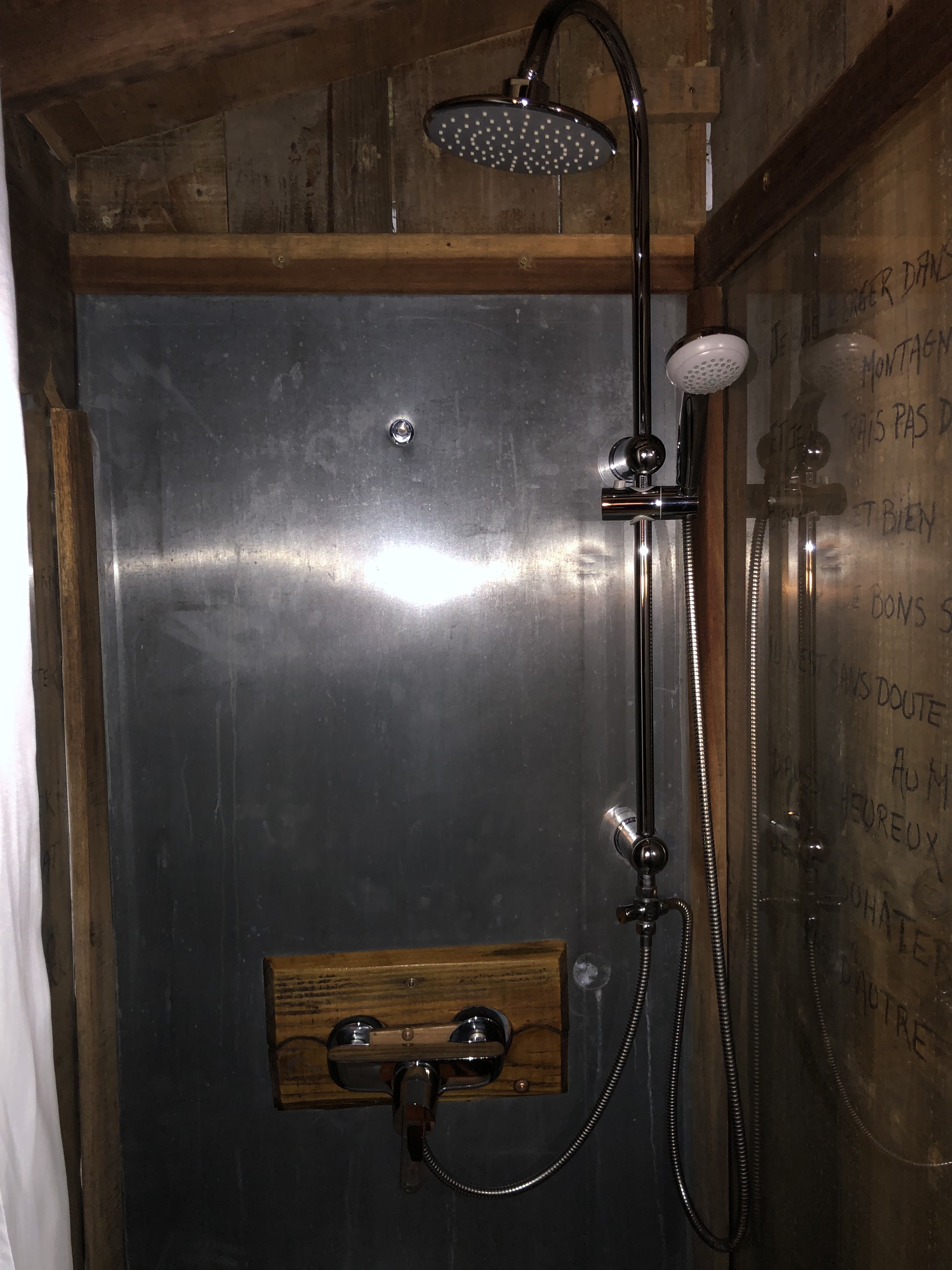 Mauvaise expérience de bout en bout pour nous. Nous nous sommes faits offrir cette nuit. C’est une cabane tout à l’étroit, finalement pas bien mieux qu’un camping car. Nous avons mal dormi sur le lit qui est à 50 cm du plafond. Bref pas un petit nid douillet d’amoureux pour nous. Le prix ne me semble pas justifié. Pas de petites attentions mignonnes qu’on peut retrouver dans des lieux d’accueil habituellement. Un endroit pas adapté à cette saison ci. J’en reviens fatigué et avec mes chaussures à nettoyer.