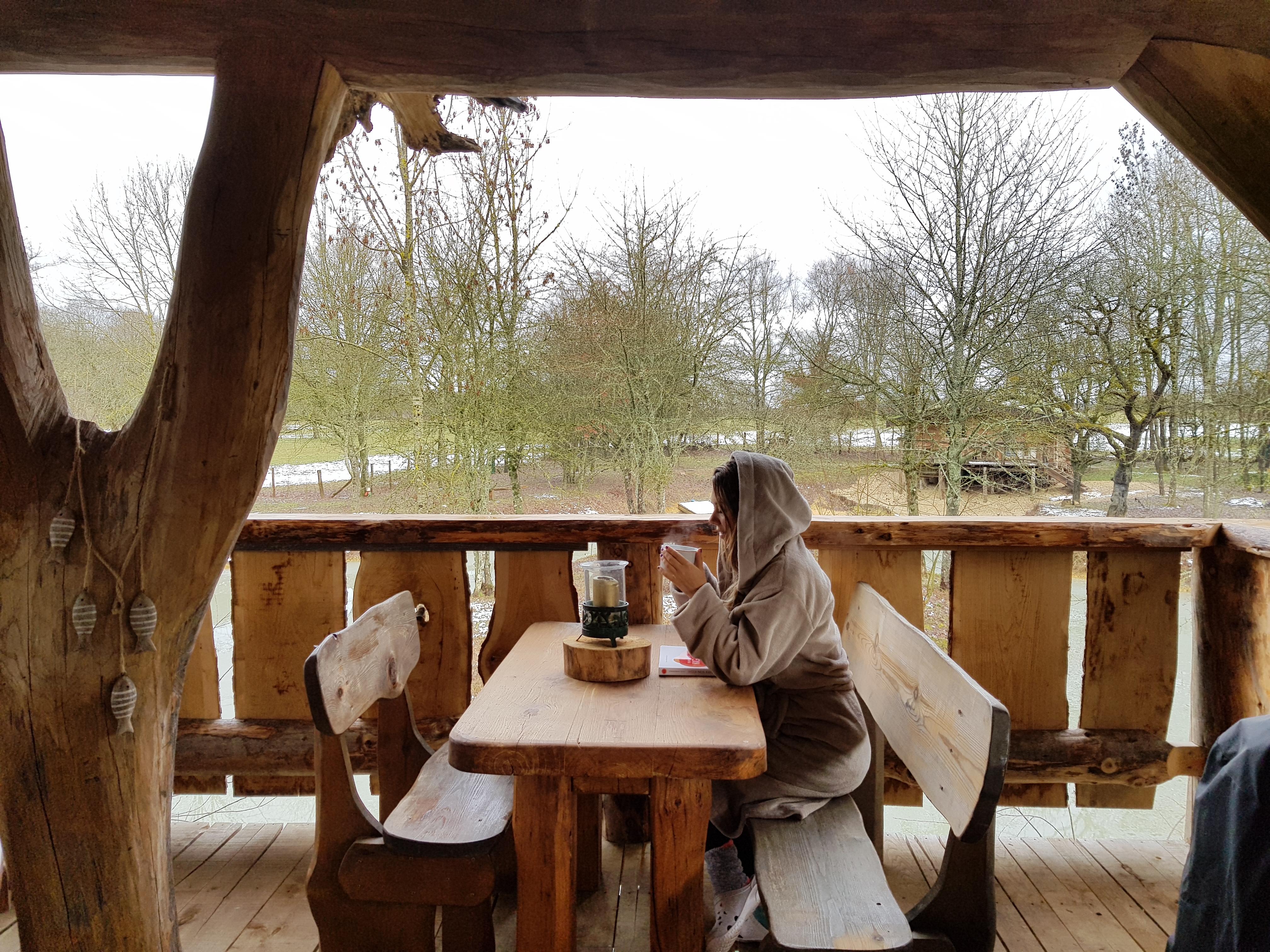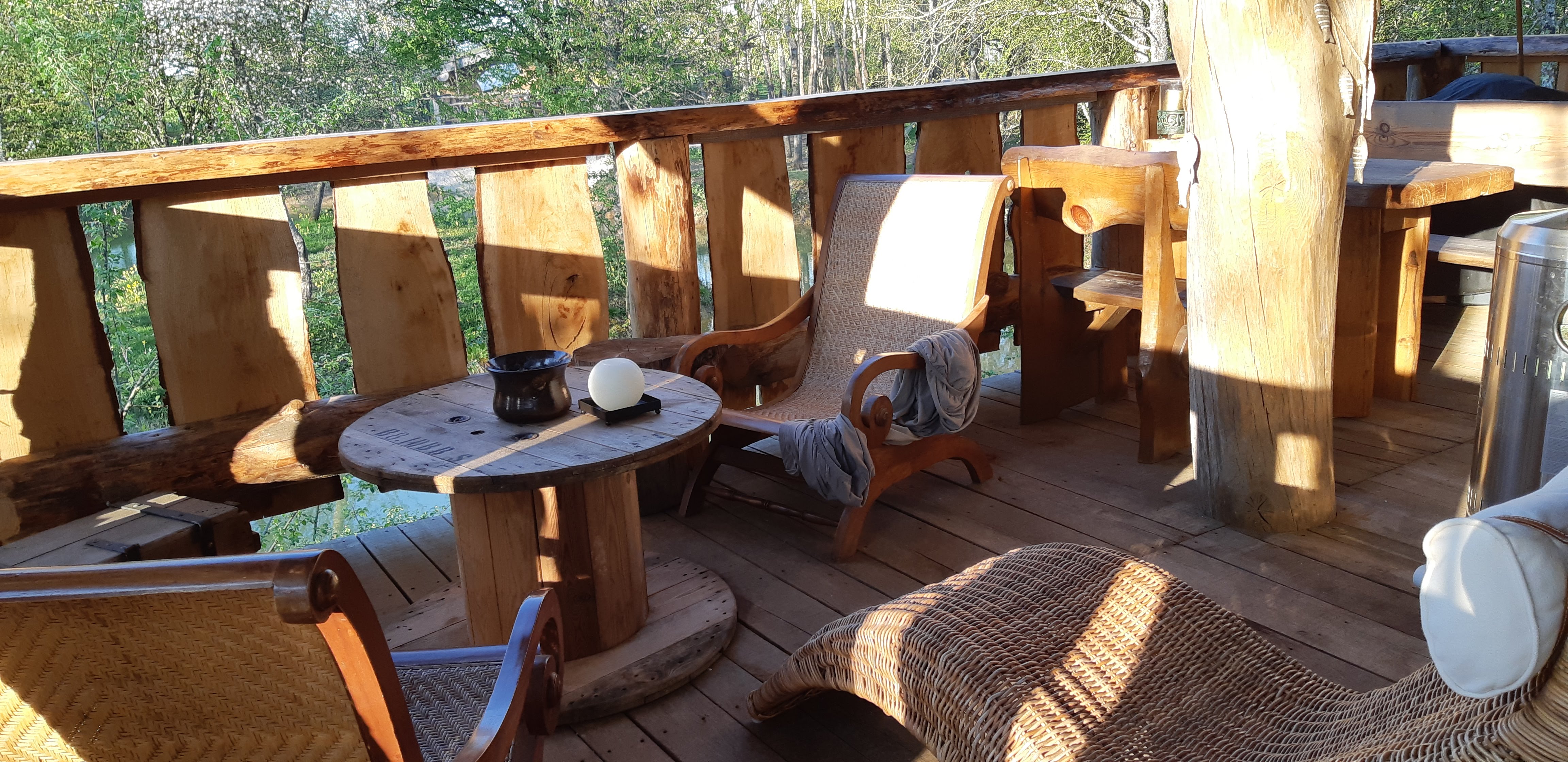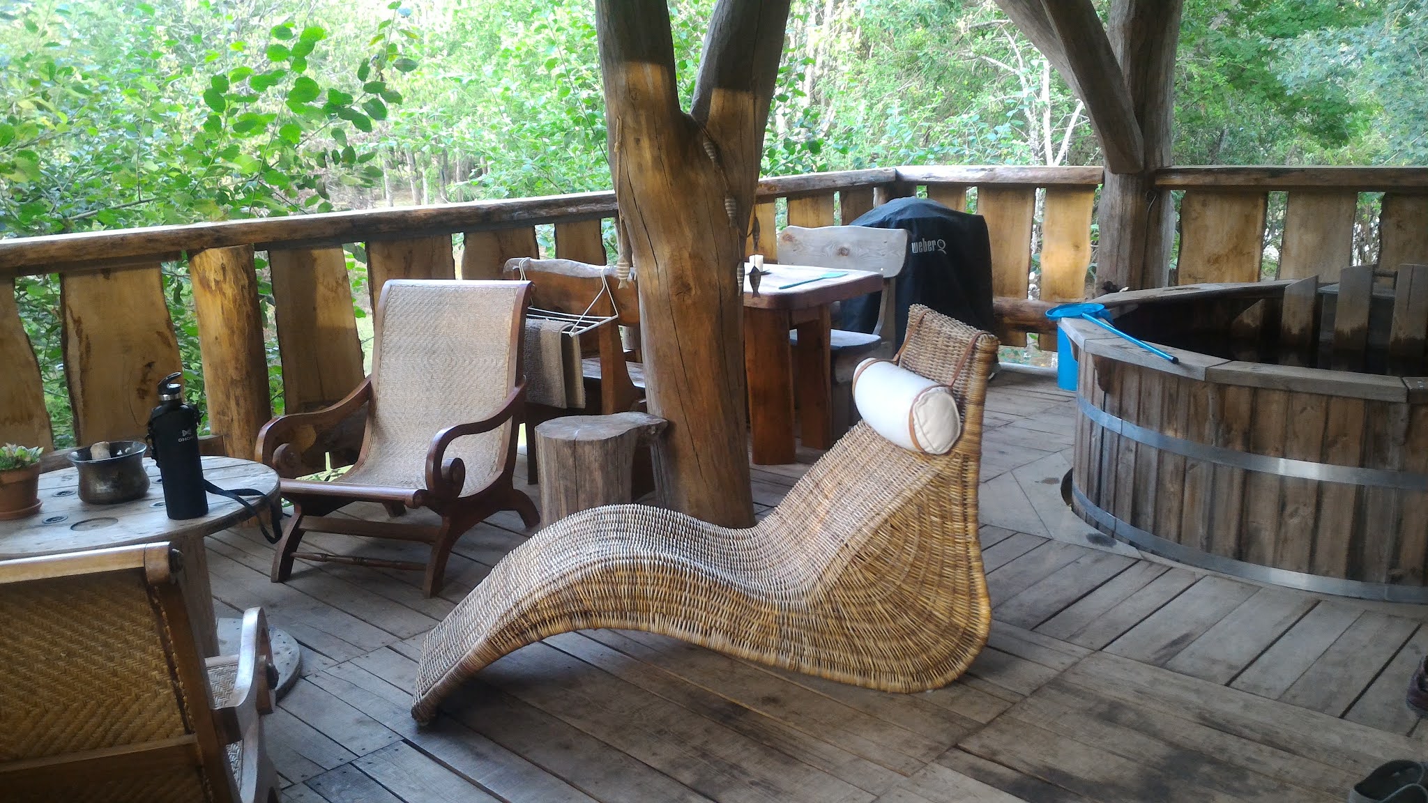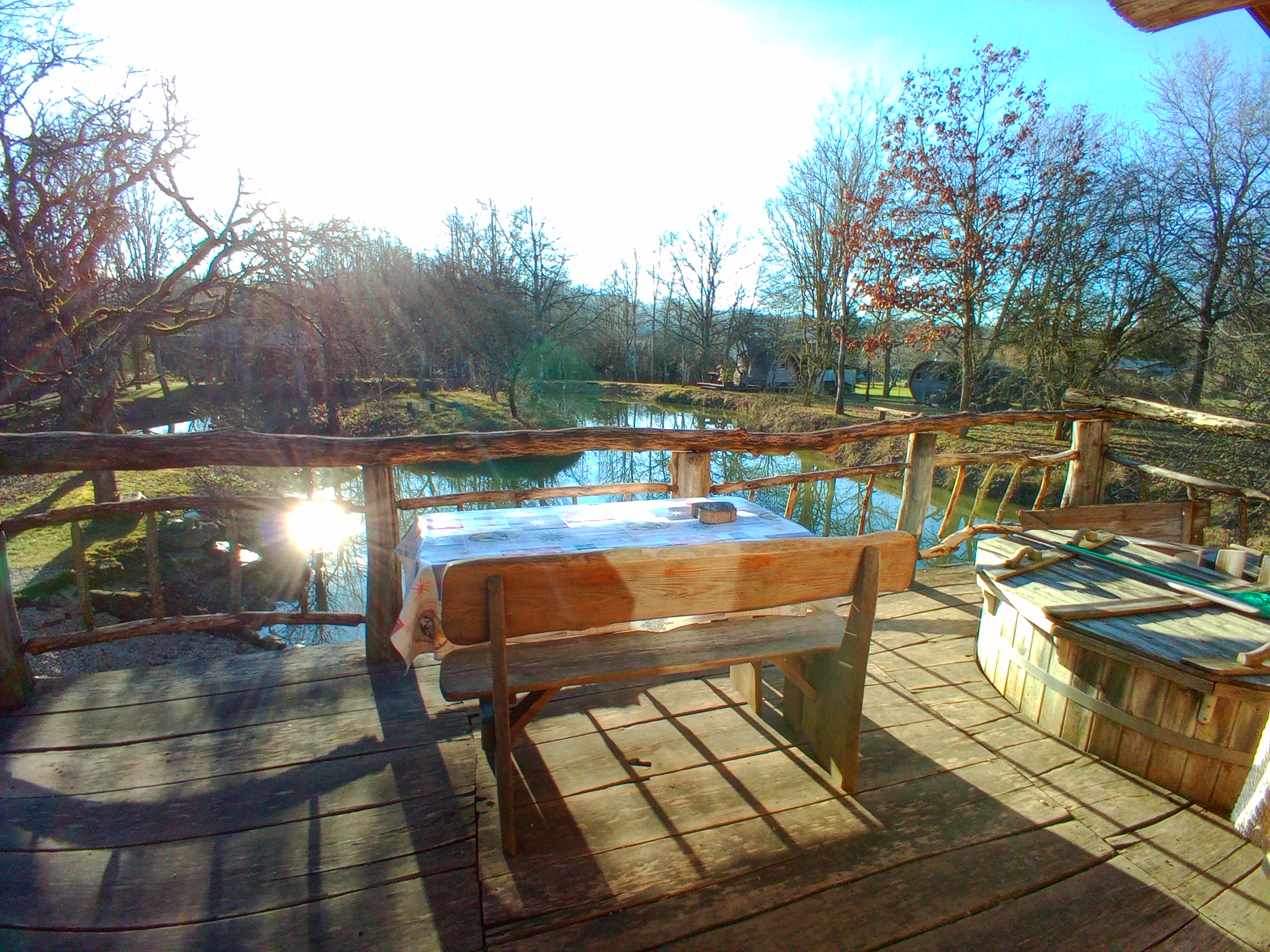 Que dire ? Tout est juste parfait. C’est un havre de paix et tout est pensé pour que nous en profitions au maximum. La cabane du Pécheur est cosy à souhait et sa terrasse… magnifique. On n’en bougerait pas du weekend. Le bain finlandais est très agréable. L’intimité est préservée par le rideau de verdure et nous surplombons un point d’eau peuplé de carpes, petits poissons, grenouilles… Quel plaisir cet endroit ! Un vrai repos au vert. L’accueil est très sympathique et les propriétaires passionnés par ce bel endroit savent communiquer leur enthousiasme et ne sont pas avares de conseils ni de gentilles attentions. Bref, nous sommes conquis et conservons l’adresse bien précieusement.